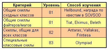 Введены новые скиллы. Новые скиллы изучаются на 81 уровне и выше (приведены названия 2х профессий, подразумеваются соответствующие третьи).